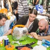 Algunos incluso se pusieron extra creativos y montaron unos sencillos robots-calabaza; para armar un duelo a muerte.