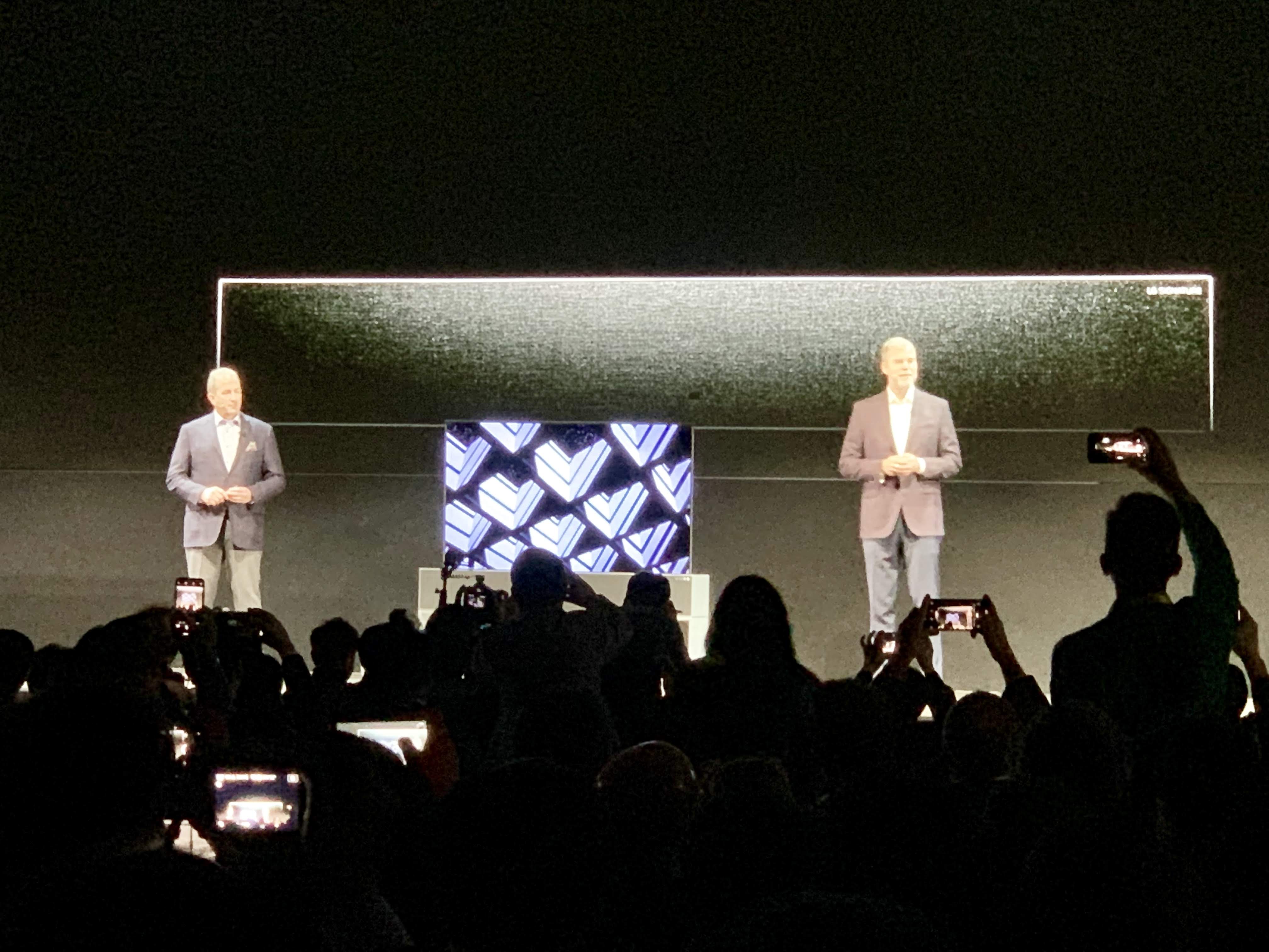 En medio de la conferencia inicial de CES 2019, LG presentó su televisor enrollable.