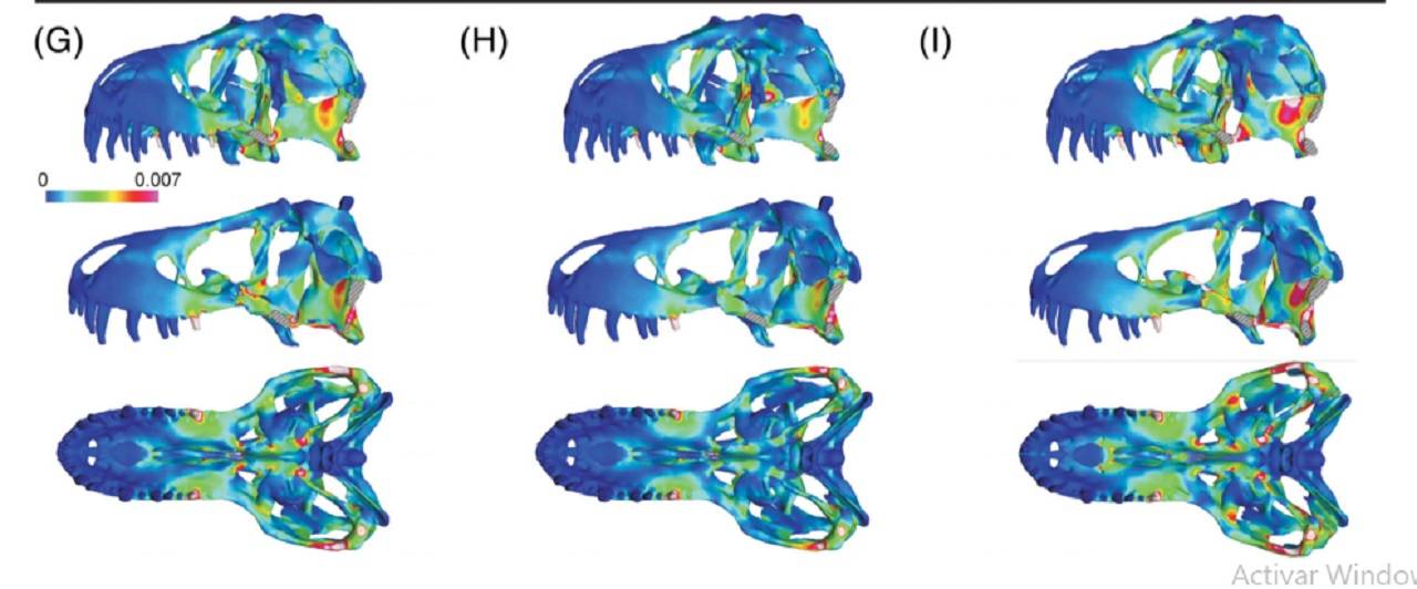 Los investigadores se centraron entonces en lo desconocido. Ya sabían que los huesos del cráneo de un T-Rex eran gruesos y estaban soldados entre sí. Pero esta vez analizaron cómo interactuaban estos huesos con los cartílagos, músculos y tejido conjuntivo que los sujetaba.