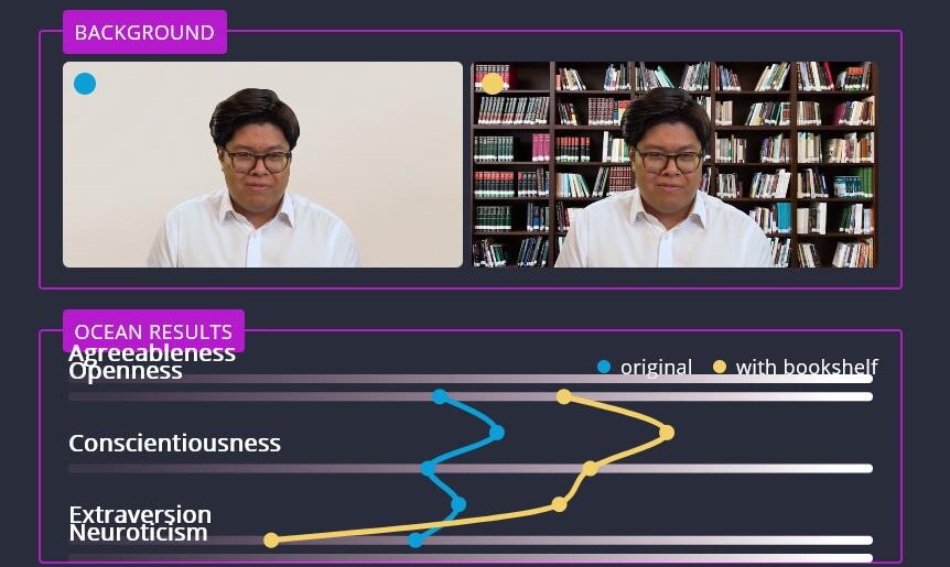 Sin embargo, como se puede ver en el estilo la misma persona con accesorios extra como un pañuelo en la cabeza o unas gafas, condicionaban la evaluación final del sistema. Para ello, una mujer de nombre Stefanie, hizo la misma entrevista con diferentes complementos.