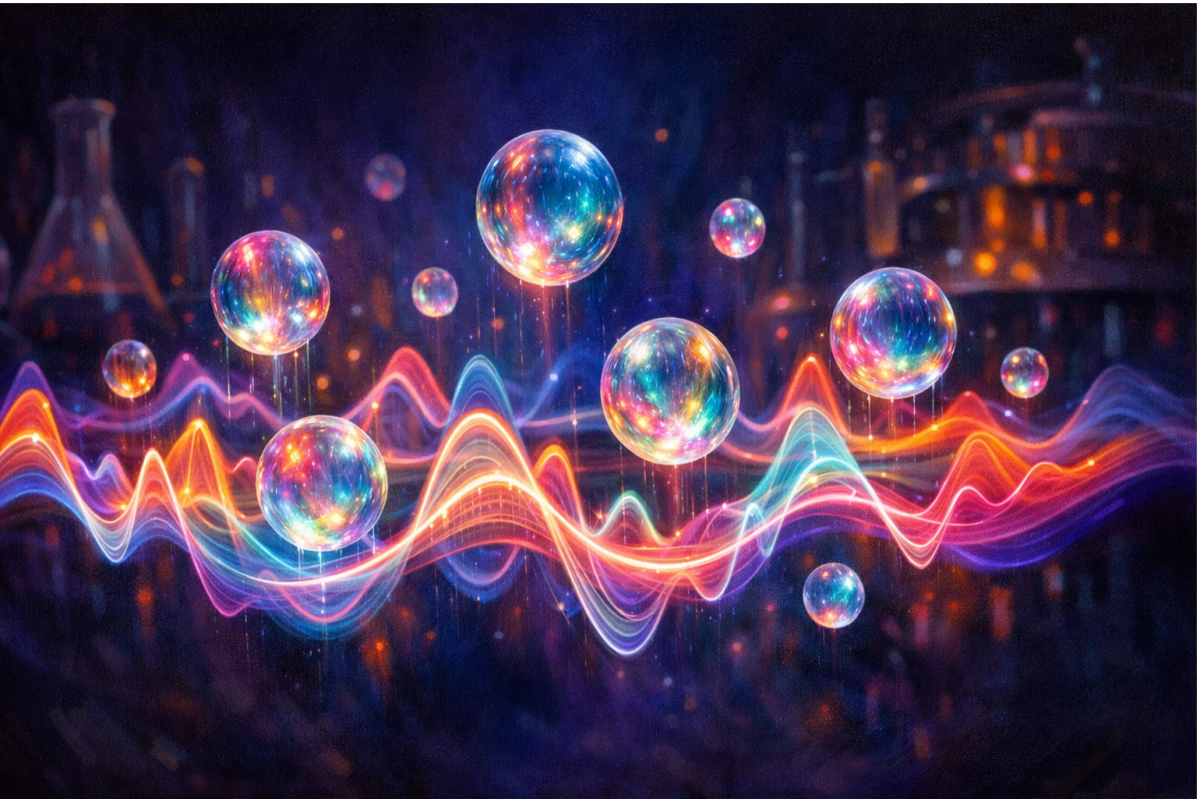 En el montaje descrito por los investigadores, un campo de sonido forma una onda estacionaria, que es como un patrón de “crestas y valles” fijos en el espacio. En ciertos puntos del patrón se crean zonas de presión que actúan como pequeños “cuencos invisibles”. Una bolita ligera puede quedar atrapada ahí y mantenerse suspendida contra la gravedad, al principio inmóvil, como si estuviera apoyada sobre un colchón que no vemos.
